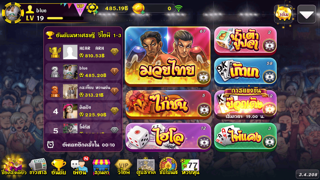 1.เข้าเกม กด ไพ่แคงขั้นเทพ หรือกดสัญลักษณ์ [:::] เพื่อเลือกประเภทห้องการเดิมพัน